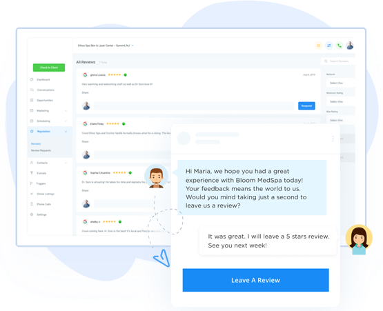 Connect with leads and customers through texting, live chat, bulk messaging, Google My Business (GBP), Facebook, Instagram and Whatsapp messages.