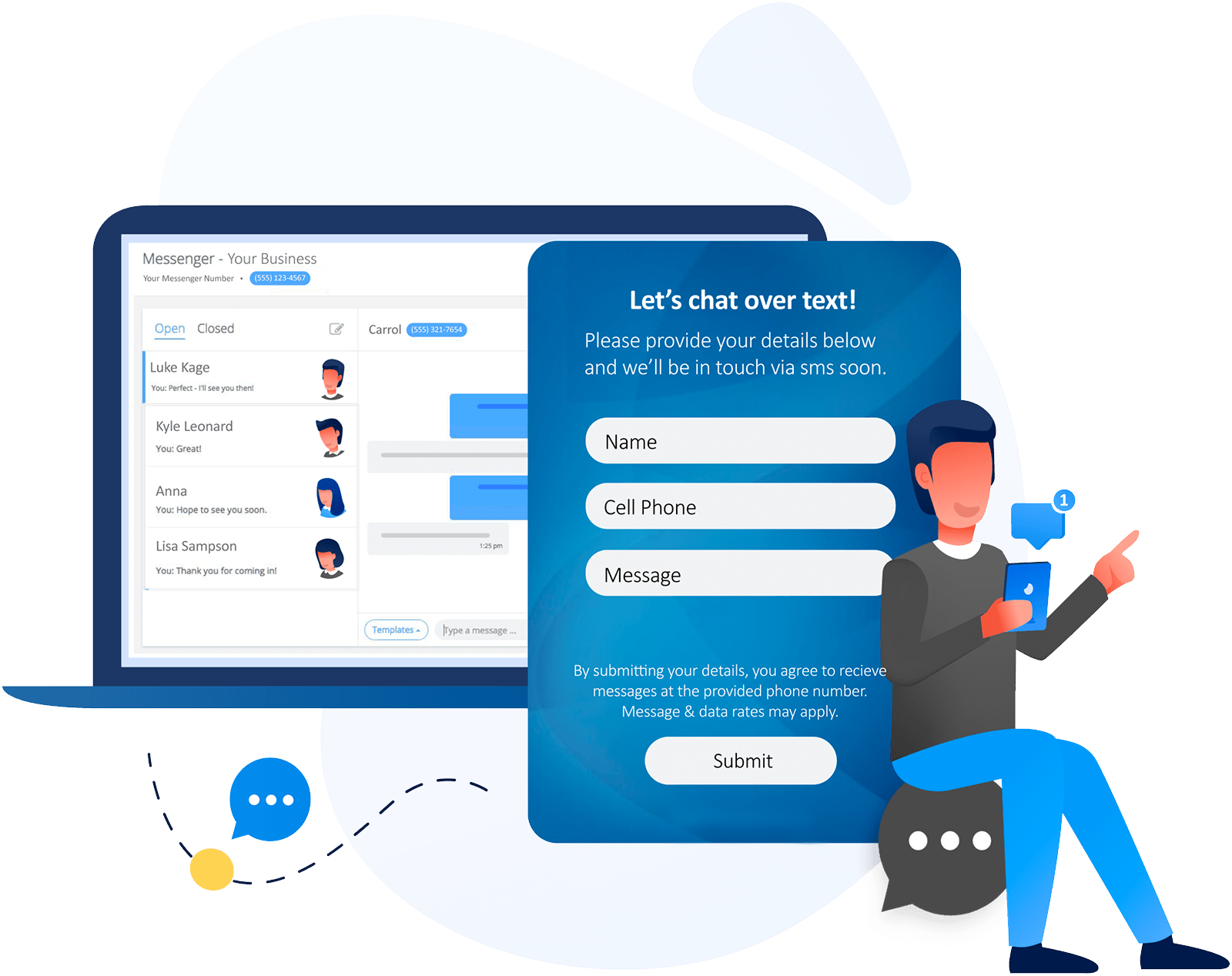 Put webchat on your website in a breeze and get fresh leads straight to your inbox. Every conversation starts with a name and a real phone number, so you can immediately focus on closing deals instead of fishing for contact details.